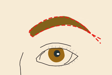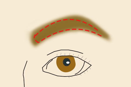 NG・・・絶対やってはいけない、眉山を完全に無視した整え方!眉山の場所は表情をつくる為の筋肉、その下には眉骨があります。眉山を削り過ぎると、眉骨が出て見えるばかりか、笑った時などの表情が不自然になり、印象が悪くなってしまいます。