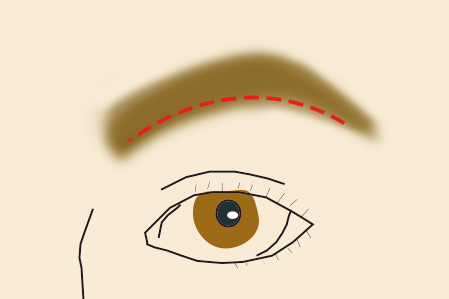 4.眉上の無駄毛を整え、眉山の高さをなるべく変えないように上部のラインをつくります。