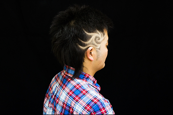 | カット | 両サイドを6~9mmのバリカンで刈上げ、トライバル模様のバリアート!バックの長い部分までラインを入れます。 |