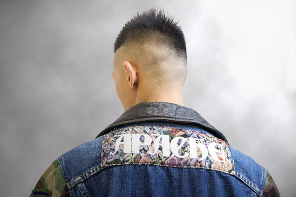 | カット | ソフトモヒカンベース。サイド~バックにかけて0.5㎜で刈上げ、サイドはラインを入れたようにカットし、バックはボカシを入れる。 |