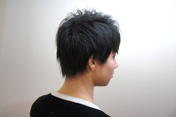 | スタイリング | フロントからトップにかけて空気を入れるようにドライ。毛先に軽くワックスをなじませ、整えます。 |