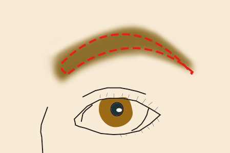 眉の上側はあまりいじらない方が自然な仕上がりになるので、あまり触らないようにし、理想の眉バランスに近づけます。