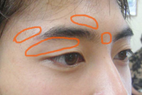1. 眉頭・・・鼻骨と目頭を結んだ線の½にあるのが理想。