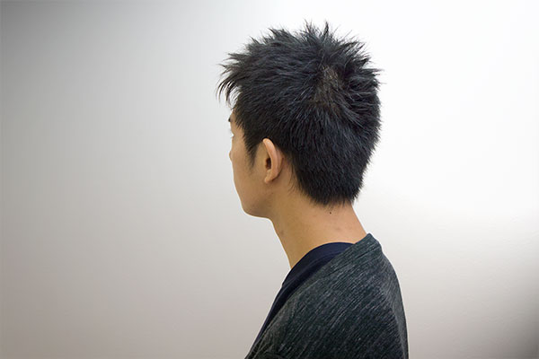 | カット | サイド~バックにかけてカットラインをぼかしながらソフトに刈上げる。全体をモヒカンラインにカットし、中間~毛先にかけ削ぎを入れて軽くします。 |