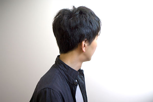 カット サイド~バックにかけてスッキリと自然にカット。全体に丸みが出るようにラウンドにカットして、毛先を軽く削ぎます。