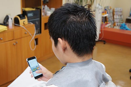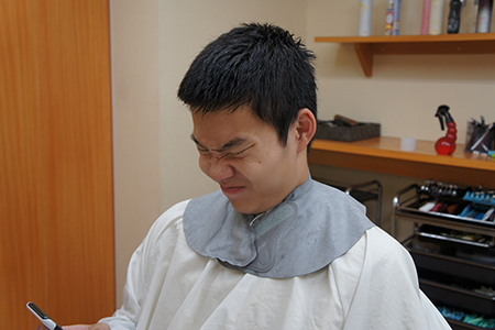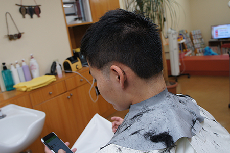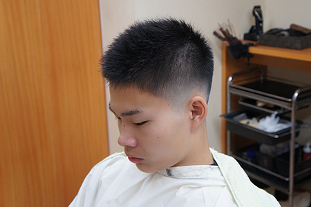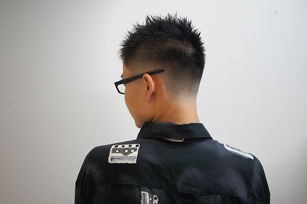 カット サイド~バックはバリカン0.1ミリ~9ミリのバリカンでぼかしながらグラデーションを付けます。トップは中間から毛先にかけて均等に削ぎを入れます