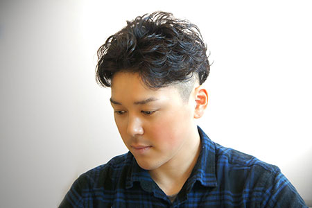 スッキリと刈上げたツーブロックカットに、ラフなウェーブでセクシーなヘアースタイル♪
