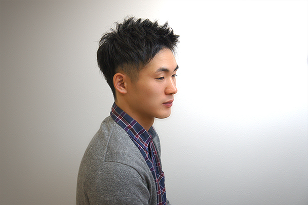 | スタイリング | 全体に立ち上がるようにドライ。特に前髪は落ちないようにしっかりクセをつけます。全体の流れと毛束感を意識して、ワックスを毛先全体になじませます。サイドとバックはタイトに仕上げます。。 |