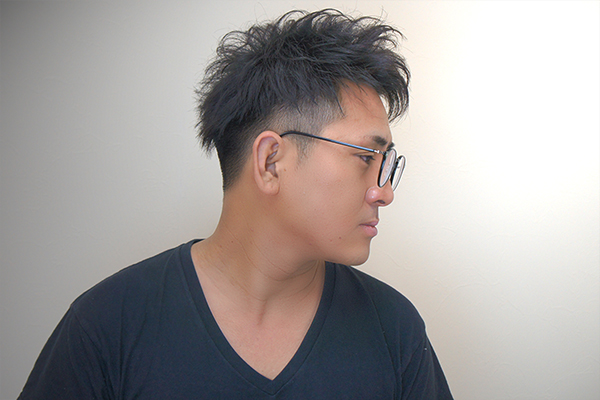 | カット | 6ミリのバリカンでツーブロックカット。立ち上がりが出やすいように、軽くなり過ぎないくらいに削ぎを入れます。 |